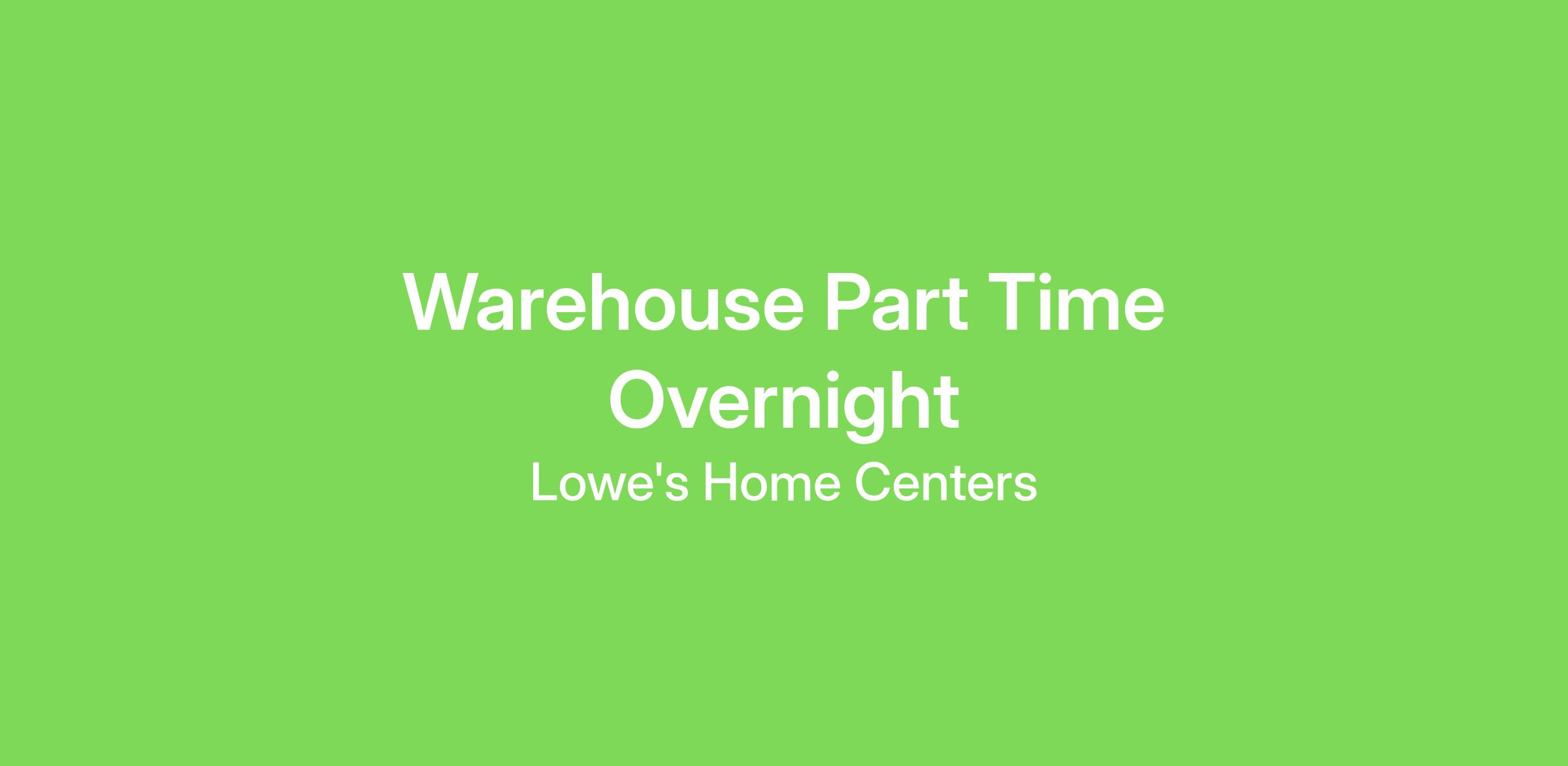 Warehouse Part Time Overnight
