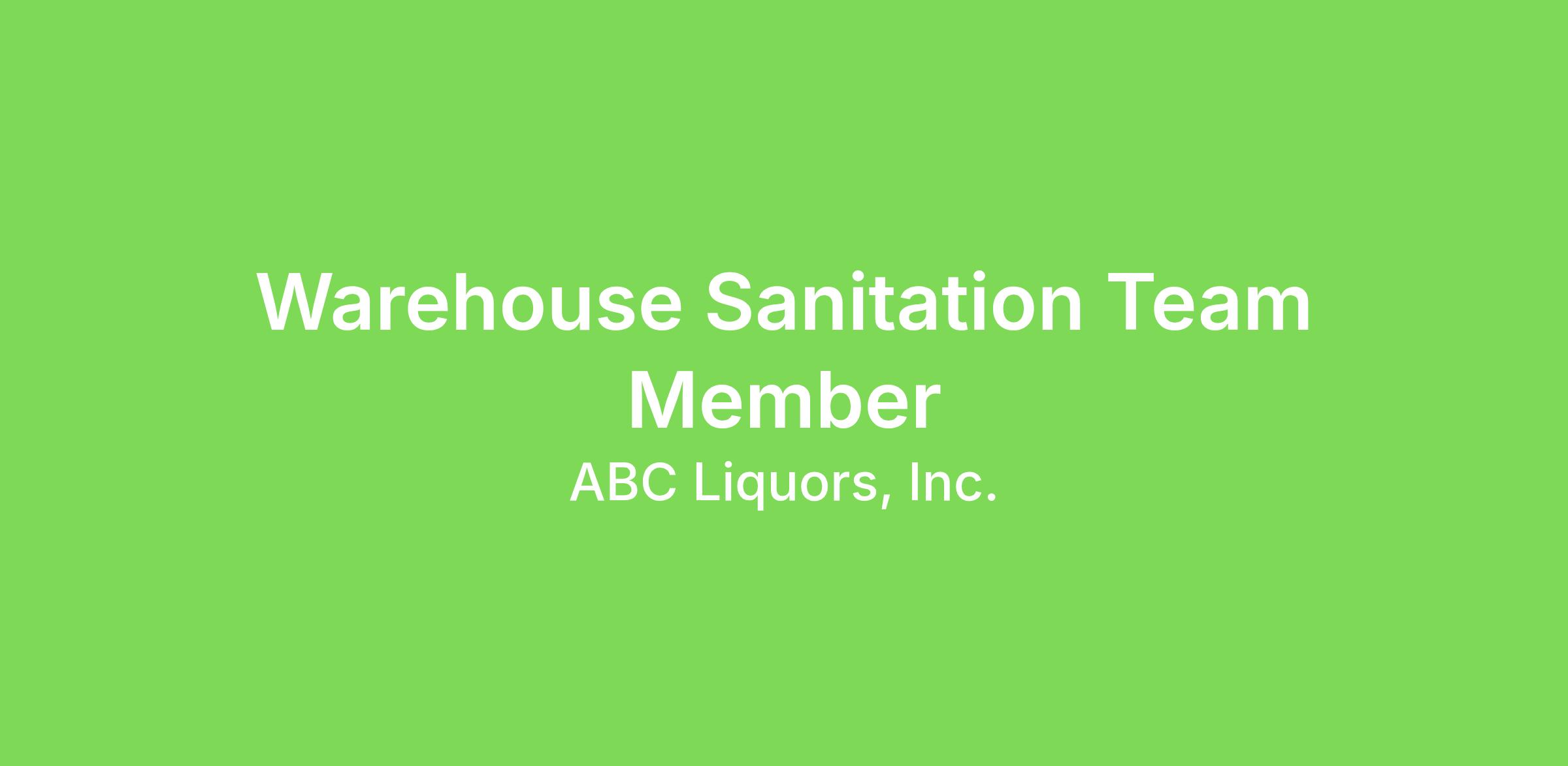 Warehouse employees are important members of the ABC team, who make sure that product is ready for shipment to our 125+ stores. Team members work in a physically demanding environment where meeting productivity standards and safety standards are required. The Warehouse Custodian is responsible for keeping the warehouse clean and orderly.Specific Job Responsibilities