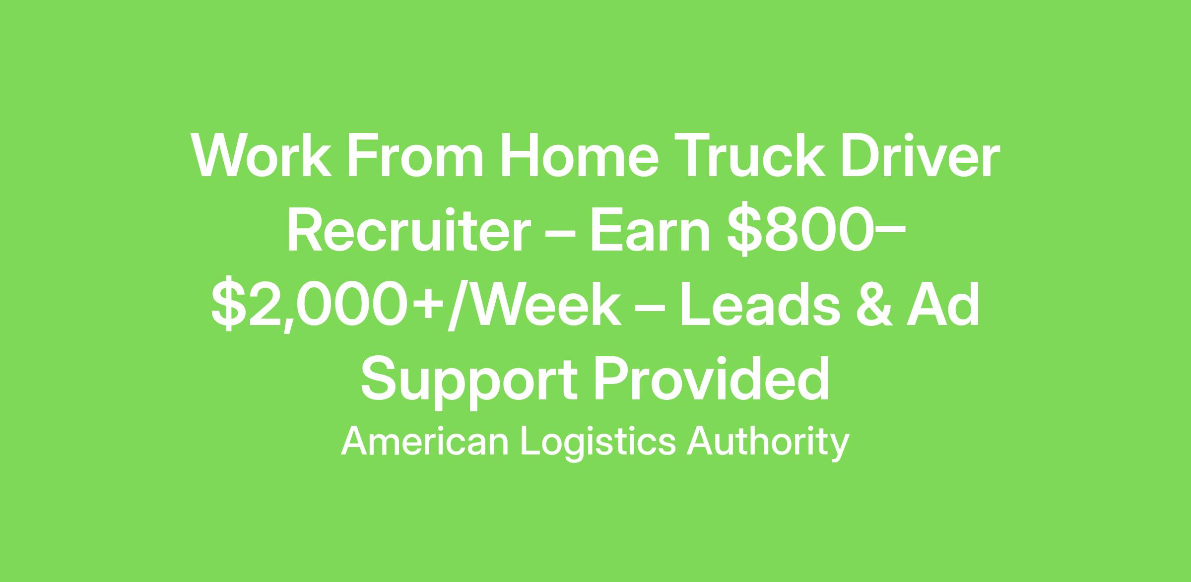 Start earning $800–$2,000+/week while working from home with leads and ad support already in place. Your career in trucking starts here.